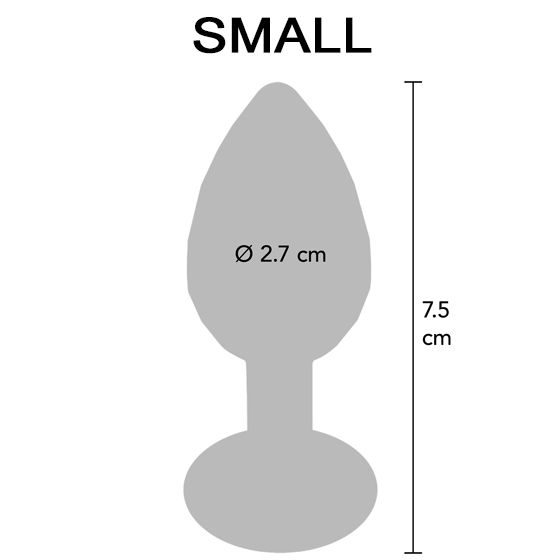 Small: Total längd 7,5 cm, penetrerande längd 6,5 cm, diameter 2,7 cm, vikt 59 gram.
