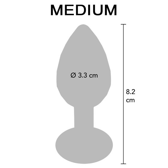 Medium: Total längd 8,2 cm, penetrerande längd 7 cm, diameter 3,3 cm, vikt 99 gram.