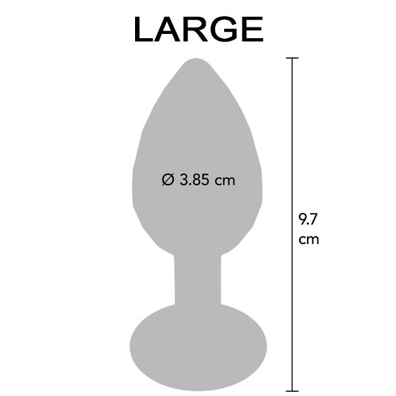 Large: Total längd 9,7 cm, penetrerande längd 8,5 cm, diameter 3,9 cm, vikt 155 gram.