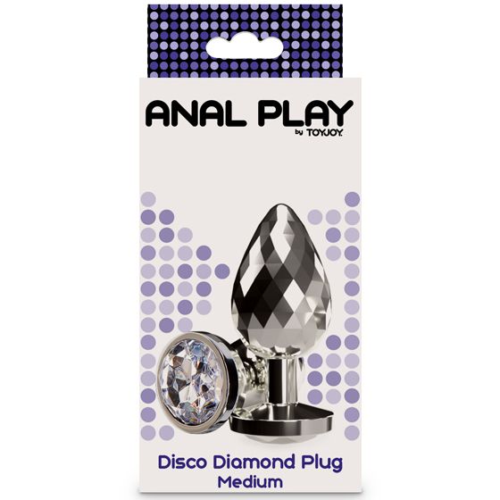 Disco Diamond Plug är en analplugg med en unik strukturerad yta som påminner om en discokula. Ytan är designad för att ge en annorlunda känsla, samtidigt som den blanka aluminiumfinishen gör den enkel att rengöra och använda. Basen är dekorerad med en glittrande sten som ger en liten extra detalj till designen.